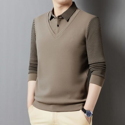 Polo a due pezzi stile t-shirt da uomo a maniche lunghe da papร t-shirt primavera e autunno a lappone sottile alla moda